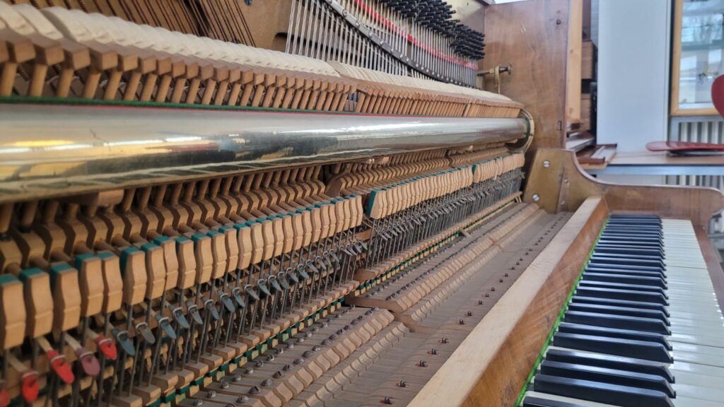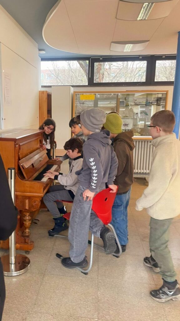 Seit Kurzem bereichert ein besonderes Schmuckstück unsere Pausenhalle: Ein altes Klavier hat ein neues Zuhause an unserer Schule gefunden. Das Instrument wurde technisch überarbeitet und frisch gestimmt – und lädt nun alle zum Musizieren ein.