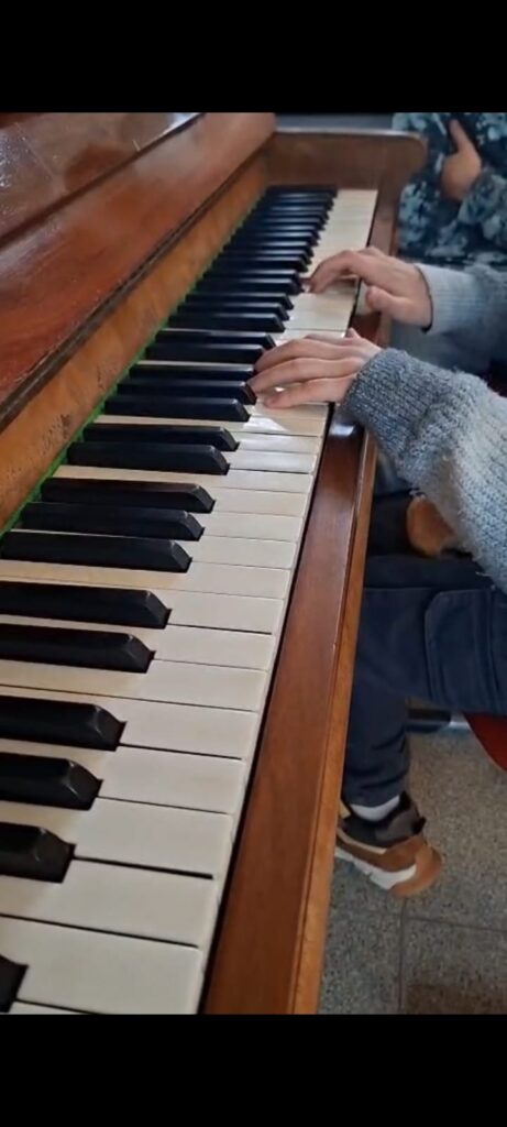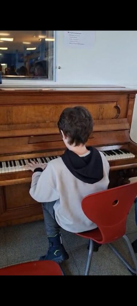 Schon in den ersten Tagen wurde das Klavier begeistert angenommen. In den Pausen bildeten sich kleine Gruppen um spielende Schüler*innen, es wurde zugehört, applaudiert und gemeinsam gelacht. Dabei konnten wir bereits beeindruckende Talente entdecken. Gleichzeitig haben sich auch absolute Anfänger*innen und neugierige Entdecker*innen mutig an die Tasten gewagt – ganz im Sinne einer offenen und lebendigen Schulgemeinschaft.